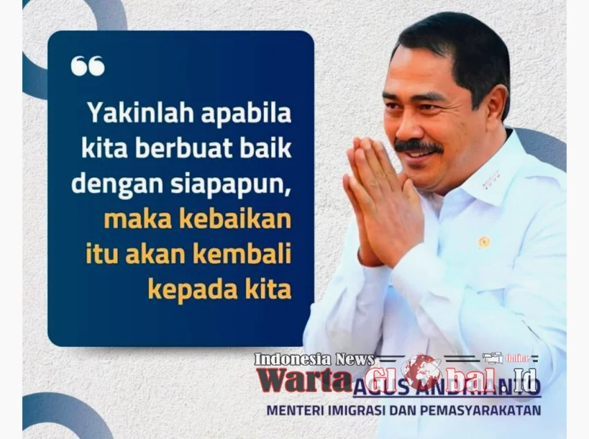 Menteri Imigrasi dan Permasyarakatan (Imipas) Agus Andrianto baru-baru ini mengunjungi Cilacap, Jawa Tengah, untuk menghadiri acara bakti sosial yang digelar Kementerian Imipas. Dalam acara tersebut, Menteri Agus menyalurkan 5.000 paket bantuan sosial kepada warga dan pondok pesantren di sekitar Cilacap.