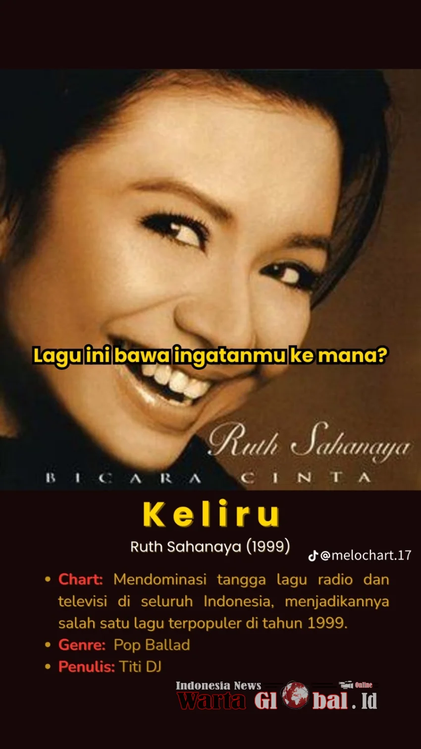 Pada tahun 1999, Ruth Sahanaya menciptakan sejarah dengan lagu "Keliru", sebuah balada patah hati yang ikonik dan abadi. Diciptakan oleh Titi DJ, lagu ini menjadi lebih dari sekadar rangkaian nada, melainkan sebuah cermin untuk jiwa yang menyesal.