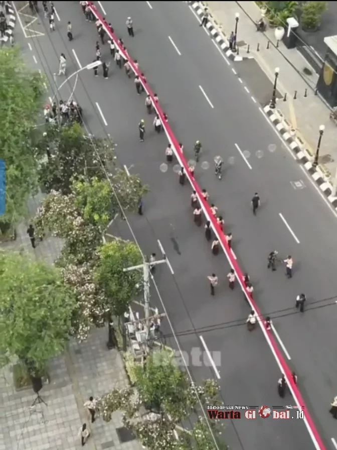 "Ini rekor bendera terpanjang sepanjang 1.945 meter: 1.245 diarak, yang 700 tadi dibawa tapi dibentangkan di sini. Ini merupakan rekor baru yang tahun 2022 lalu kita hanya 1.001. Nah, kali ini tahun 2025 kita sudah 1.945," ujarnya. (Hans)