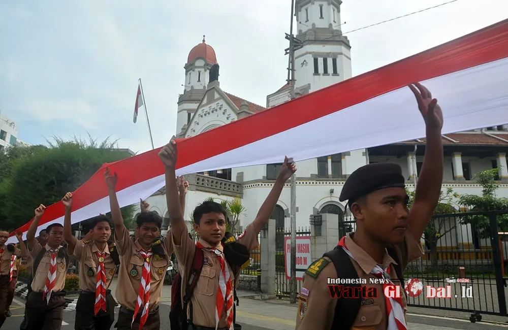 Mereka berjalan membentangkan bendera Merah Putih sepanjang 1.945 meter dari Balai Kota Semarang Jalan Pemuda, melintasi Jalan Pandanaran dan berakhir di Lapangan Pancasila Simpang Lima.