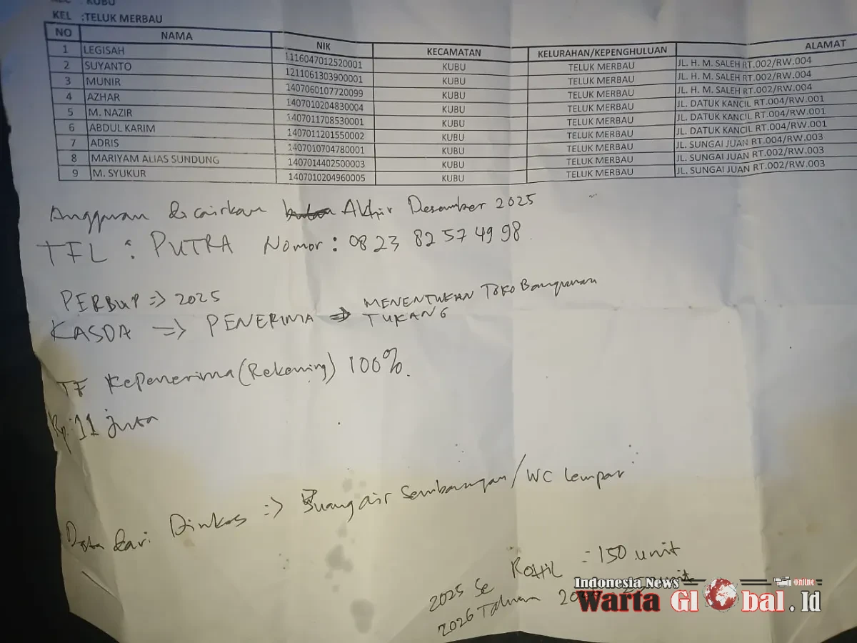 Jakarta / Rokan Hilir – Dugaan pelanggaran dalam program bantuan pembangunan MCK Tahun Anggaran 2025 di Kecamatan Kubu dan Kubu Babussalam, Kabupaten Rokan Hilir (Rohil), kini menjadi sorotan publik.